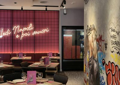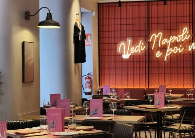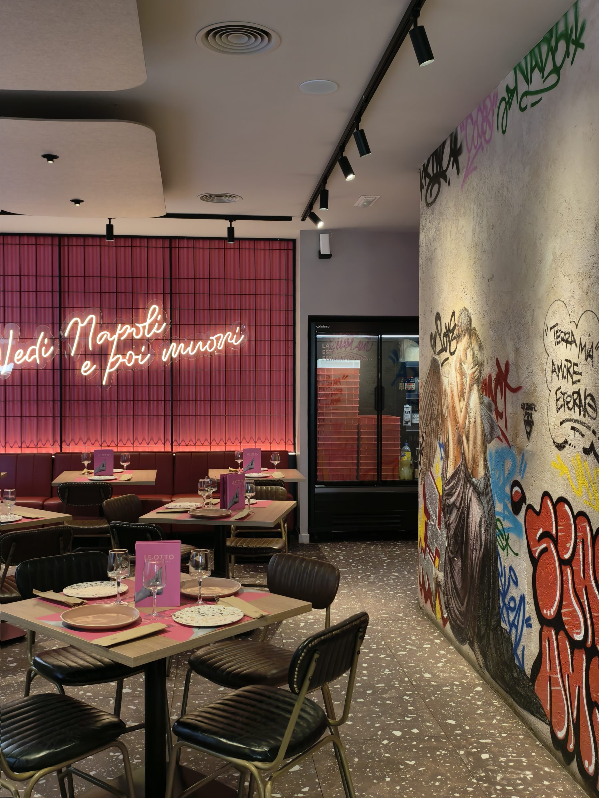El restaurante Le Otto, una pizzería reconocida con el premio a una de las mejores pizzas de España, representa un claro ejemplo de integración entre diseño interior, identidad de marca y confort acústico en restauración. El espacio, diseñado por Beri Estudio Creativo, presenta una propuesta estética urbana caracterizada por formas orgánicas en el techo, una cuidada iluminación ambiental y el uso de materiales que transmiten calidez y personalidad.
